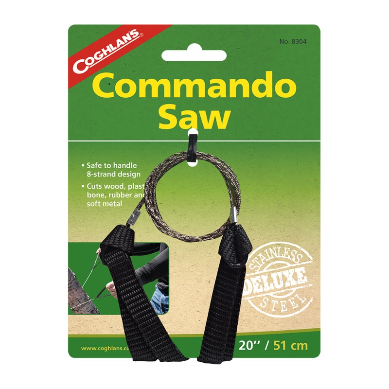 This saw features an 8-strand stainless steel blade that cuts wood, plastic, bone, rubber and soft metal. The durable nylon wrist straps convert the saw to a snare by passing one wrist strap through the other.For best results, position the cord around the item you wish to cut and hold arms as far apart as possible. This will improve cutting and prevent the blade from breaking.