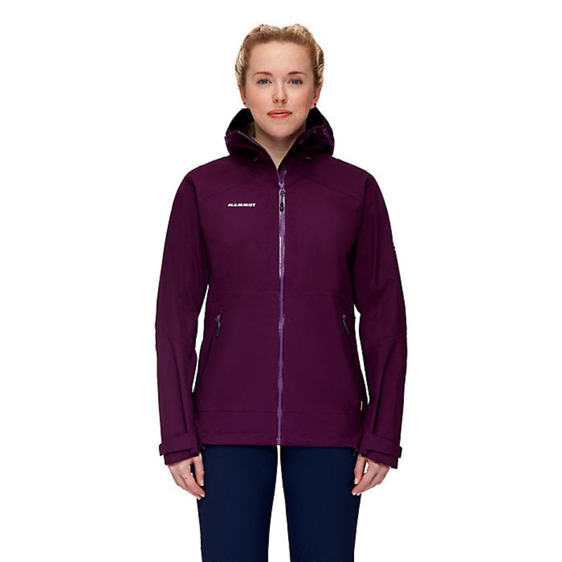 Gore-Tex Paclite does the heavy lifting in Mammut's women's Convey Tour HS Hooded Jacket, providing durable and reliable windproof and waterproof protection. A hood with a reinforced peak keeps the rain at bay, while underarm ventilation helps to control y