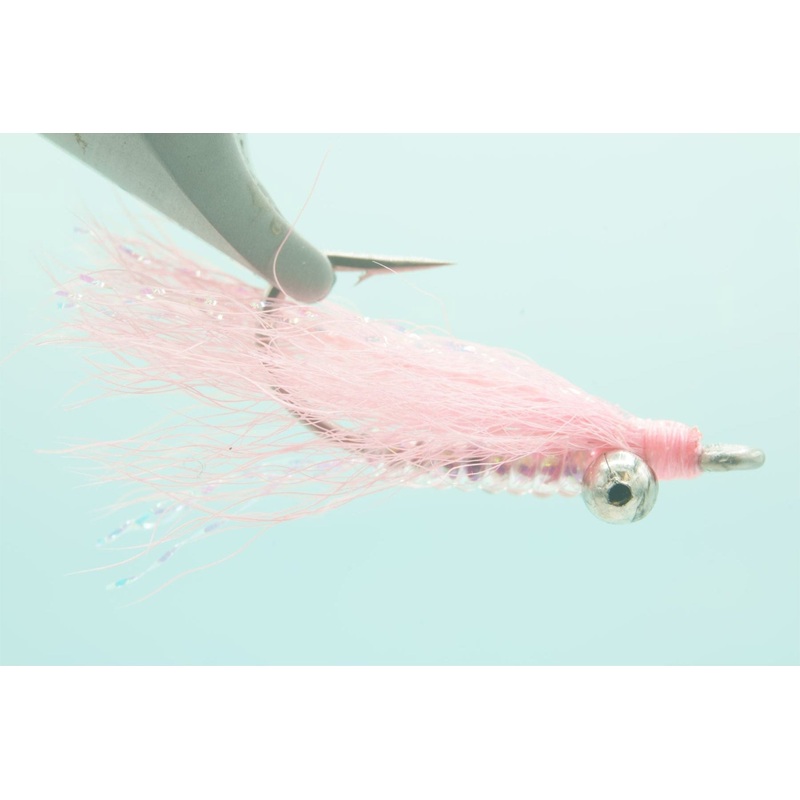 The Crazy Charlie was developedin the Bahamas onAndrosIsland by local guide Charlie Smith in 1977. Widely effective and popular fly pattern across all the bonefish flats. This version is tied in pink with unweighted dumbell eyes to make it suspend in the w