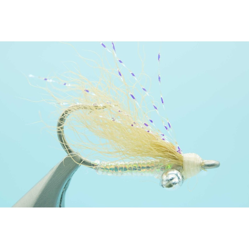The Crazy Charlie was developed in the Bahamas on Andros Island by local guide Charlie Smith in 1977. Widely effective and popular fly pattern across all the bonefish flats. This version is tied more sparsely with unweighted bead chain eyes to make it susp
