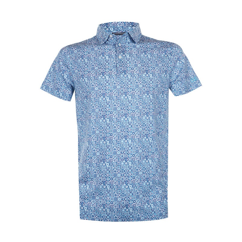 - An allover print men’s polo shirt featuring a three-button placket