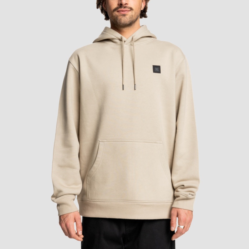 FeaturesType: Pullover hoodieFabric: Heavy weight cotton fleece (450g/m2)Fit: Standard fitPockets: Kangaroo pocketHerringbone back neck tapeButtonholes and rounded drawcord with DCSHOECO branded metal tipsDC black label at left chestEmbroidery at left slee