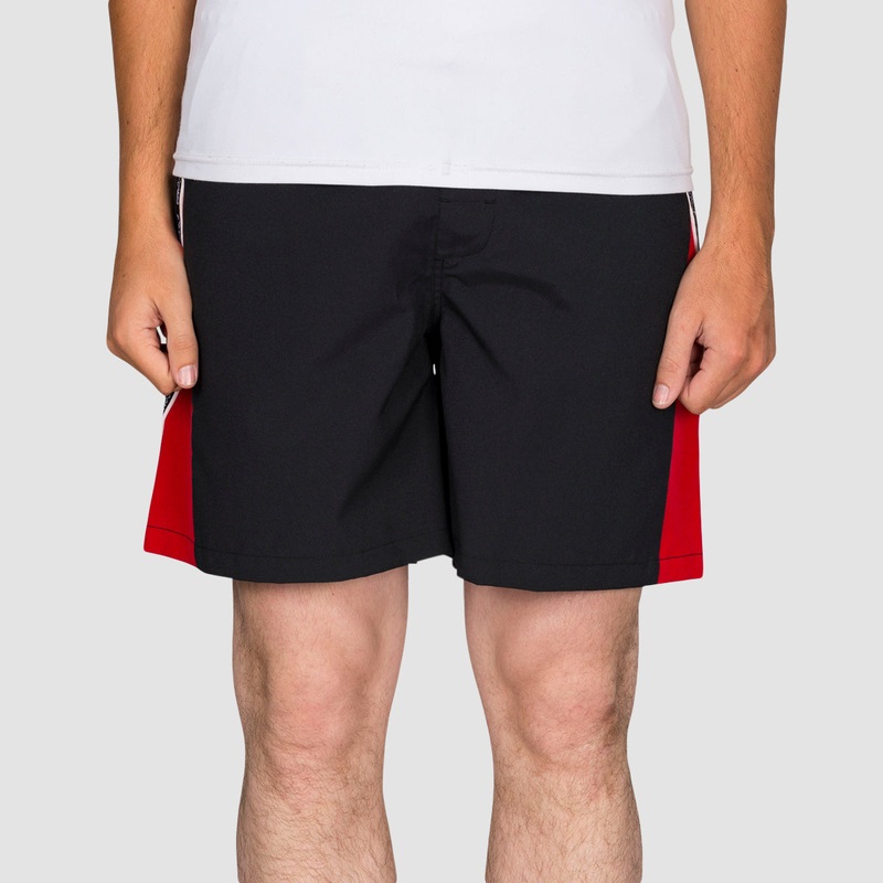 The model is 180cm/5'11" tall and wears a size M in the photo Fabric: Mid-weight plain weave polyester fabric Fit: Comfortable regular fit Outseam: 18" outseam, short length Waist: Elasticated waist with drawcord Tape and panel details Back pocket 100% Pol
