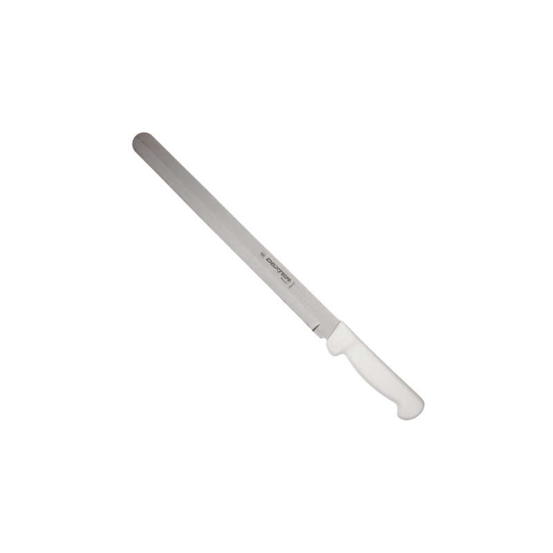 Take on any culinary challenge with the Dexter Basics Roast Slicer! Its 12 inch blade is made from high carbon pressed steel, ensuring durability and razor-sharp precision. The ergonomically designed handle provides a slip-resistant grip for safe handling. With its hollow ground feature, maintenance and sharpening is a breeze. Plus, the white Sani-Safe handle keeps germs and bacteria at bay. Get ready to slice like a pro!