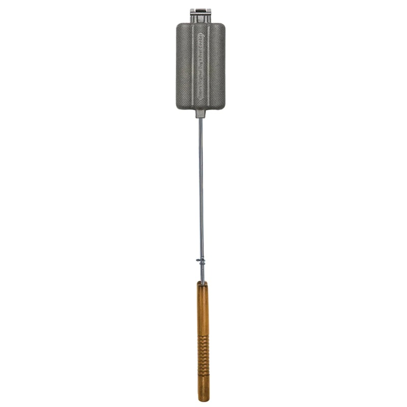 Cook hot dogs & brats (3 at a time) over the fire while sealing in the juices and not piercing the meat with this handy cast iron cooking device. Simply open up the clam shell style castings, drop in your dogs, close & latch and cook over the fire until do