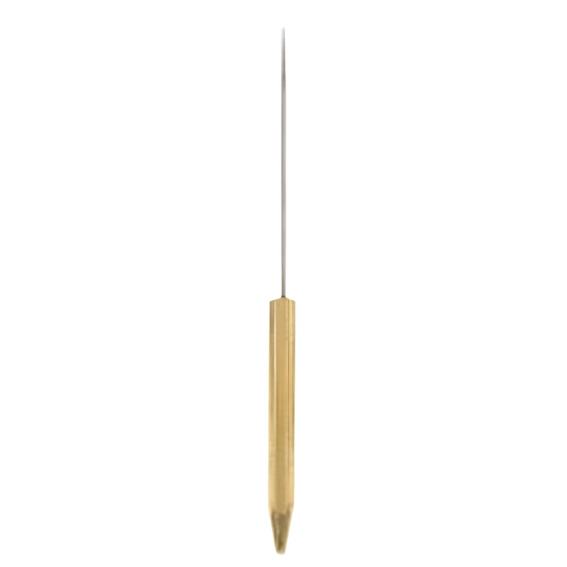 Use this Dr. Slick Brass Bodkin With Half-Hitch Tool to apply head cement, tease materials on a fly, or execute a half hitch. Features a brass handle with bonus half hitch tool and stainless steel bodkin endWith half hitch tool5" length