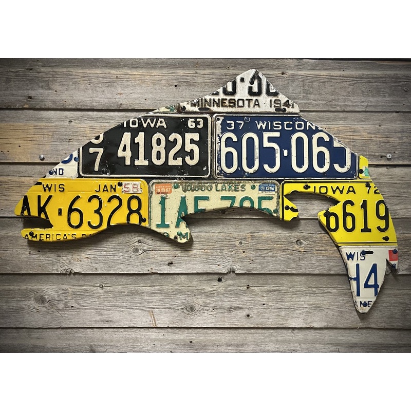 Represent the technical streams and rivers in the Driftless area encompassing some of the most beautiful parts of Minnesota, Wisconsin, and Iowa with this vintage trout. Every license plate art piece is handmade and is unique. Yours will look very similar but will not be exactly the same as the photo example.