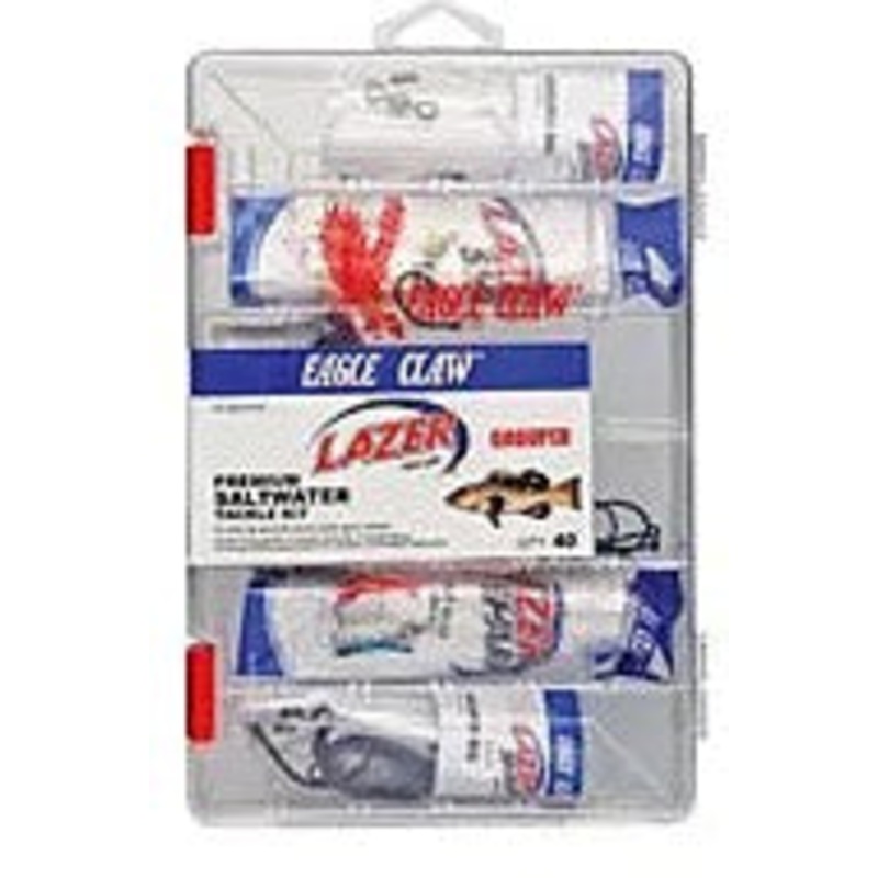 Saltwater Grouper kitEagle Claw Lazer Saltwater Grouper Value Pack Tackle KitSaltwater Grouper kitIncludes assorted hooks, rigs and snellsSaltwater grouper kitAssortment of hooks, rigs and snells, bait rigs, swivels and sinkers, and circle hooksStowable ut