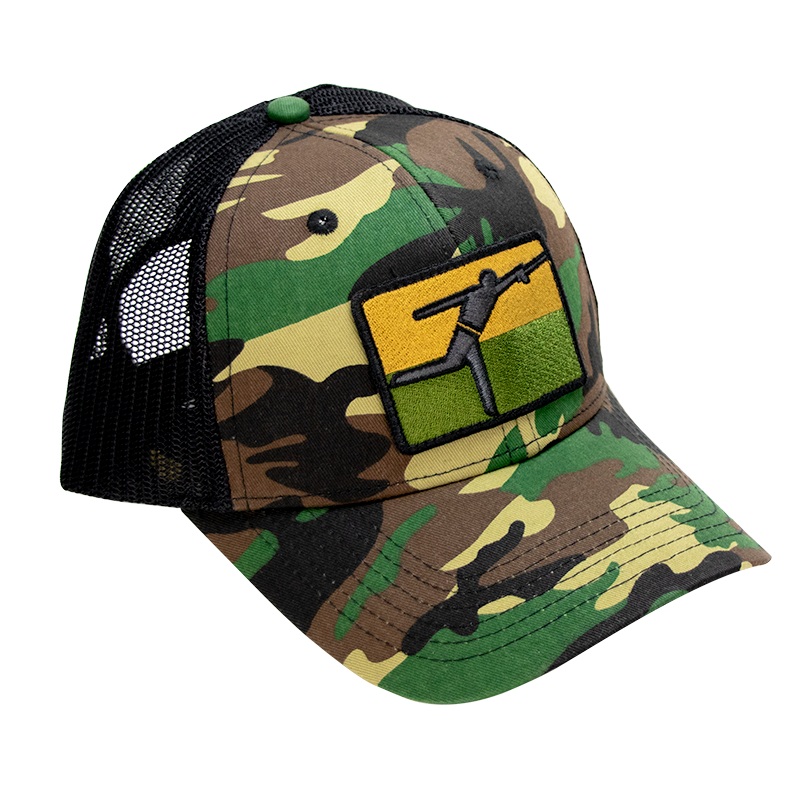 The Echo ECHOMAN Patch Trucker HatStandard fit snap back trucker hatBlack mesh with camo front