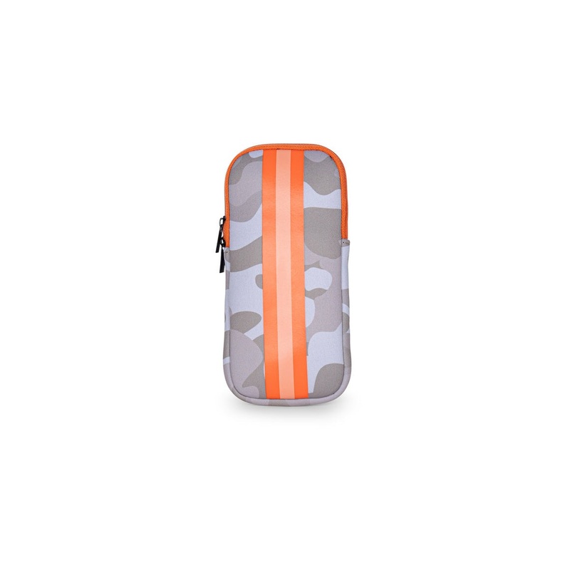 Beige camo/orange & peach stripeNeoprene eyeglasses case with 2 interior card slitsAccommodatesoversized glasses/sunglassesHandwash8 X 4 X 2 inches_____________________________________________