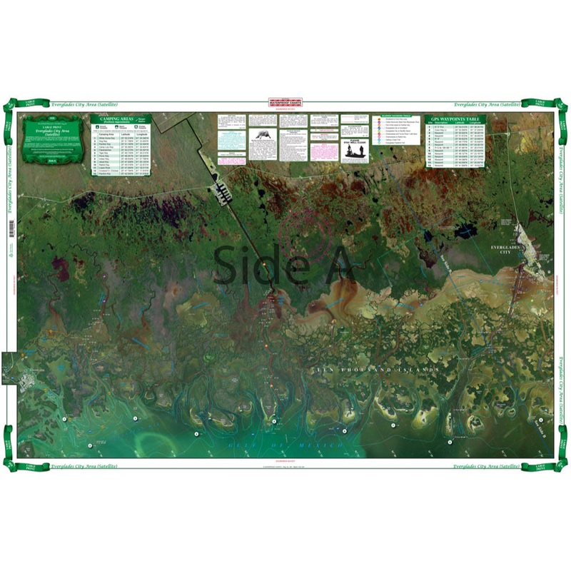 Detailed coverage of the 10,000 Islands area from Tripod Key to Chatham Bend. Includes Coon Key, Dismal Key, Port of the Islands and all the waterways south of Route 41. Compiled from NOAA charts and USGS Pictomaps this chart features canoe trails, inside small boat routes, updated beaches and campgrounds, GPS Waypoints and important areas of recent shoaling. Get the most out of your boating adventures around Everglades City with this navigation map.