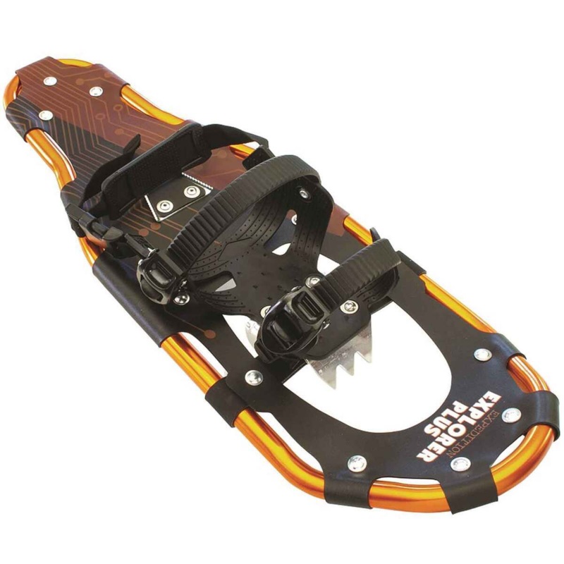Expedition Explorer Plus Snowshoes Kit - Features ananodized aluminum frame and dual ratchet bindings for a secure, comfortable trekking experience in snowy conditions. ______________________________ Dual cleat system XTPE Platform and articulating toe ___