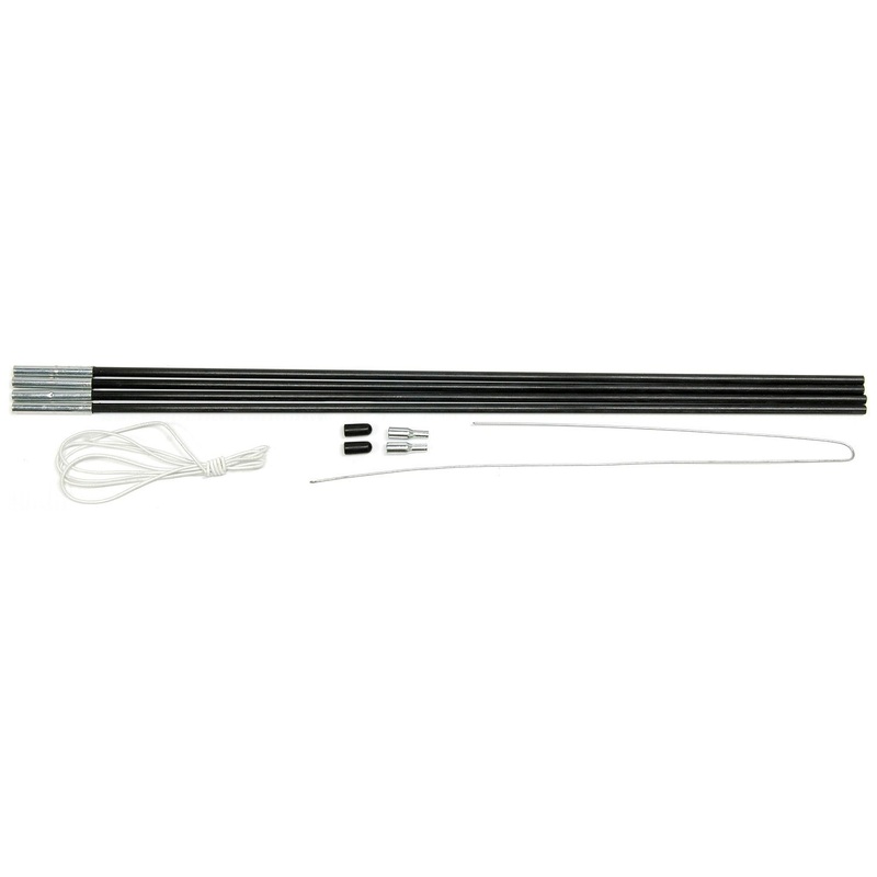 4 fiberglass pole sections, each is 26.5" and tipped with a ferrule.2 grommet end tips and 2 vinyl end caps.12 feet of shock-cord.1 cord threader.