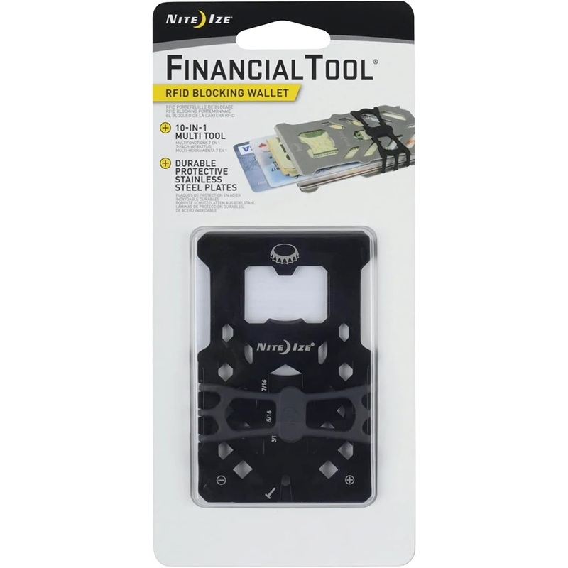 ___________________________________________________________ This triple-duty Financial Tool is a wallet, multi tool, and RFID-blocking protector all in one. Featuring 10 different tools integrated into its compact, heat-treated stainless steel plates held
