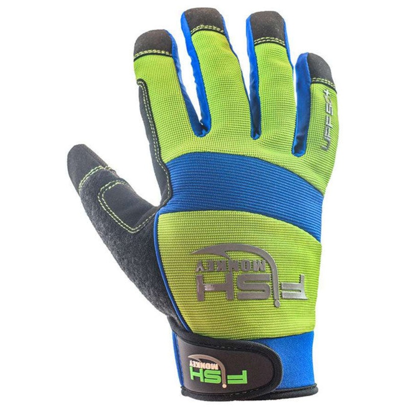 Synthetic leather palm offers superior construction strength with second skin fit. 4-way stretch, quick dry, UPF 50+ material for maximum comfort. Velcro wrist closer offers easy on and easy off of gloves operation. Comfort fit for use in any fishing or marine environment. PVC Monkey Grip palm provides a non-slip grip.