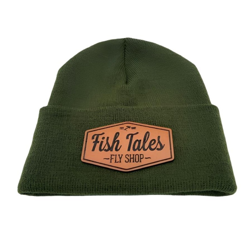 The Fish Tales Beanie with Leather Patch is a cozy, stretchy pull on cap with the stylish Fish Tales Logo Patch on the front. Fold the edge of this beanie up to fit as desired. Available in several colors from the subtle olive to the bright golden yellow.1