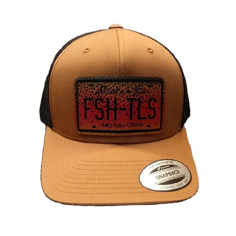 TheFish Tales Cutty Plate Retro Trucker Hat features classic Yupong styling and a cutthroat trout skin license plate patch. Nostalgic trucker shape meets the timeless qualities of Alberta’s native trout species.