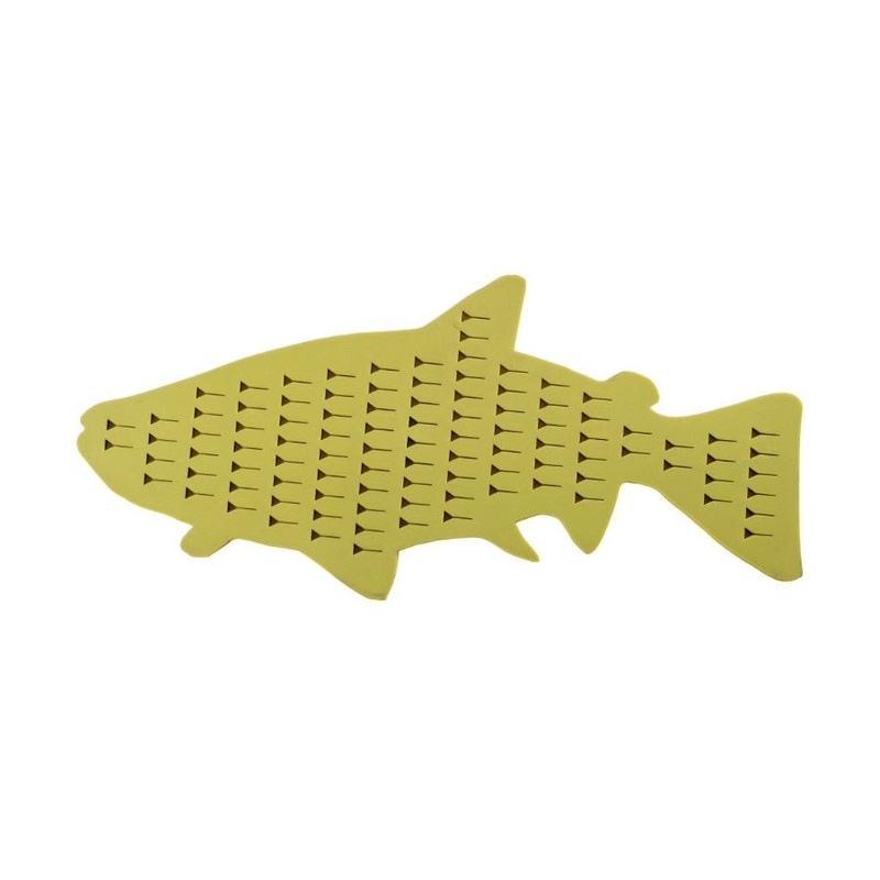Dry or store your flies in style with this Fish Tales Silicone Trout Boat Patch. This 10" molded self-healing silicone boat patch is extra thick to secure both large and small flies and features a strong 3M adhesive back to attach securely to your boat or