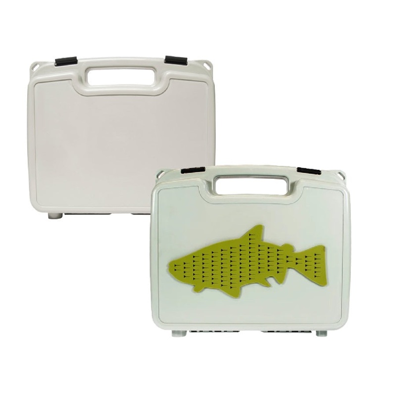 Keep your flies contained in this Fish Tales Teton Boat Box. This improved boat box is stronger thanks to ABS construction, water resistant, and features thick foam to secure the largest flies.Grey in colorSnap closuresExterior silicone drying patch13.5" x