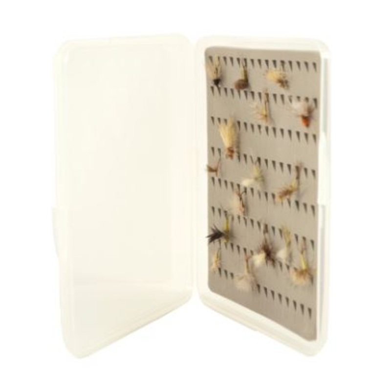 Fish Tales Ultra Slim Fly Boxes are made from tough, clarified polypropylene. These 1/2" thick minimalist boxes will keep you loaded with midges and options while keeping the bulk down. Available with a variety of foam or magnetic backers. There is a super