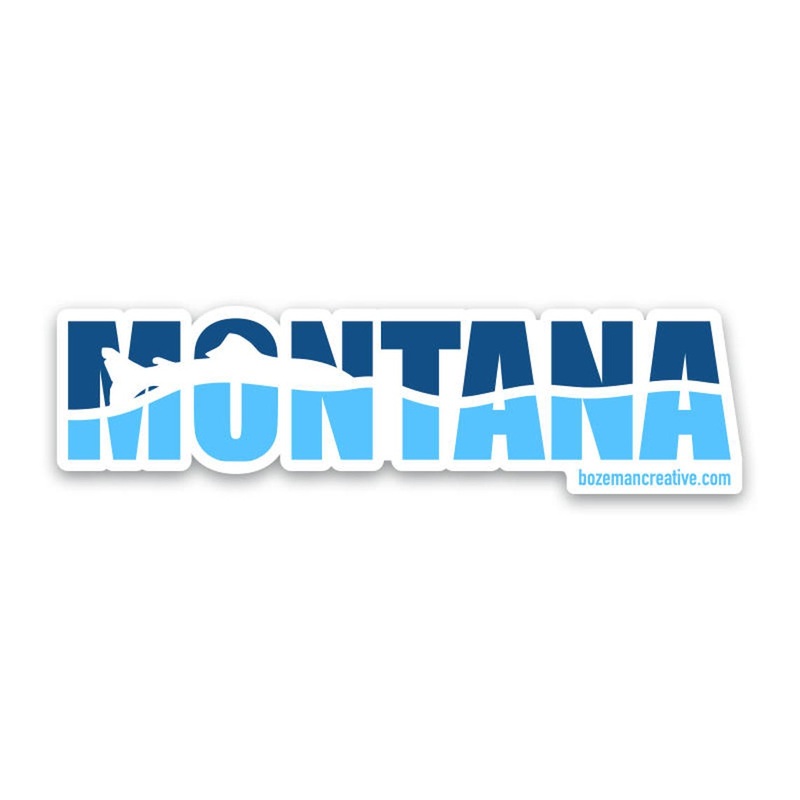 This is an original illustration by Karl Schwartz of the word Montana with a little trout hidden inside.The 4.73 wide X 1.3 tall stickers are made from thick, durable vinyl with a UV laminate that protects it from scratching, rain and sunlight.This sticker