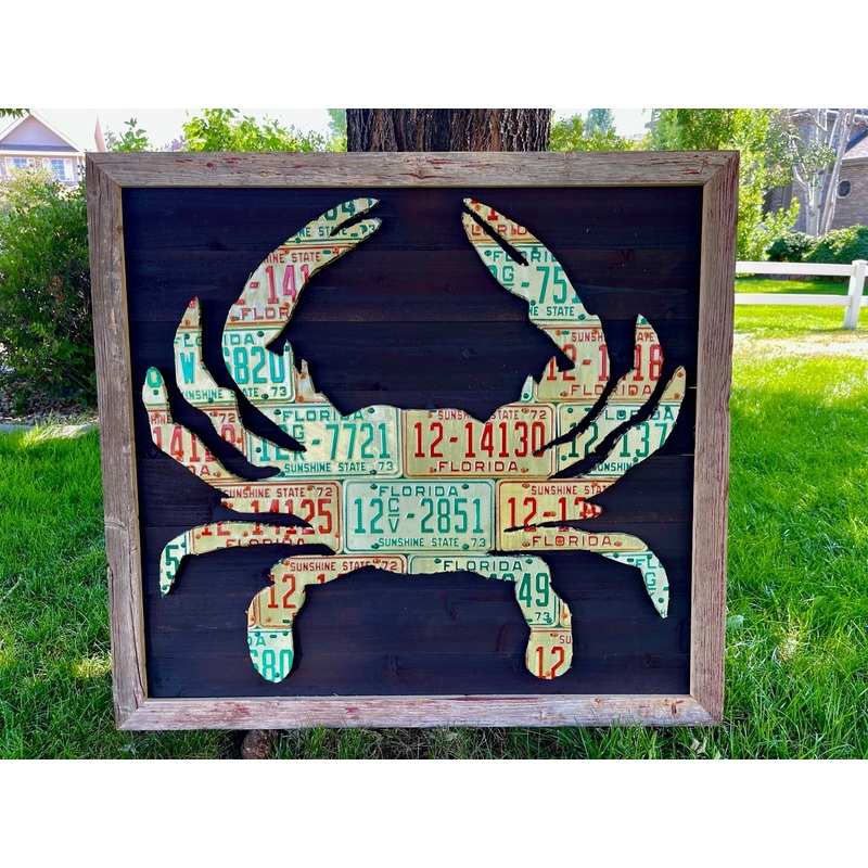With Frame Add-on– While my pieces look amazing hung without a frame, I feel that mounting the artwork on Barnwood really adds definition and depth, and perfectly compliments aged license plates. Should you choose to have your piece framed, please specify whether you would like Espresso-stained or natural barnwood as the background in the Special Notes and Requests textbox prior to adding it to your cart.