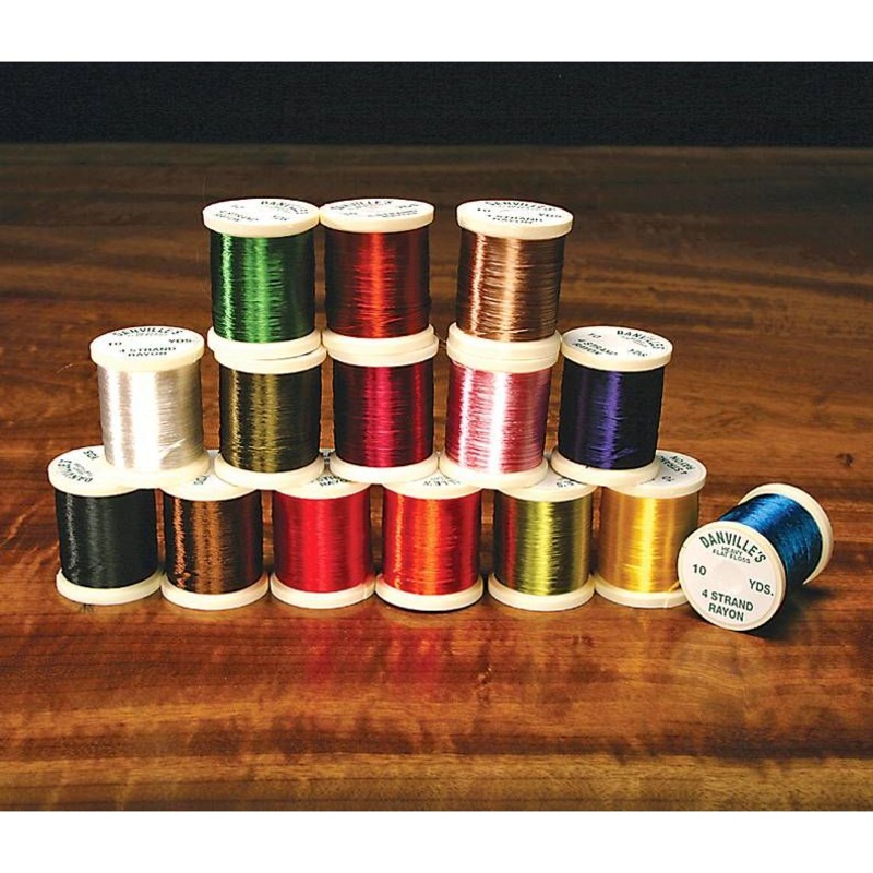 Danville 4 strand rayon floss for numerous fly tying applications. All 4 strands can be used for larger flies or it can be split for smaller flies. Please specify color.