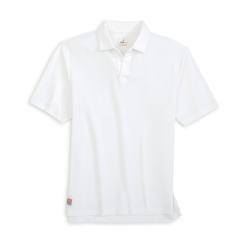 The ultimate poolside style, this terry polo harkens back to the day when lounging under a beach umbrella in the Hollywood Hills was a full-time job. It's made with a lighter version of the fabric used for ultra-luxe towels and it's made with a Johnny coll