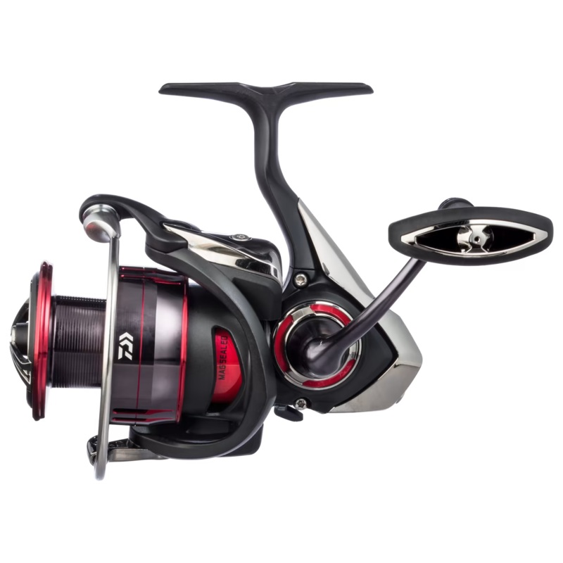 The new Fuego LT series of spinning reels, state of the art fishing tools that define Daiwas commitment to the LT Concept of lighter, tougher material. With conventional, heavier spinning reels, long hours of casting and retrieving can fatigue the arms and hands.The Fuego LT housing is light but sturdy constructed from a Carbon based material. The innovative Magsealed main shaft delivers butter smooth performance while preventing water or dirt intrusion. The technology uses a Mag Oil that can be magnetically solidified similar to a packing on a boats propeller shaft. Oil smooth operation as well as a water and impurities barrier makes the design and function unparalleled. The Machined Aluminum handle is ergonomically correct and screws easily into the body. Six ball bearings and one roller bearing combine to create the ultimate in silky smooth operation. If you are looking for an amazing reel packed with high-end design and technology features then the Daiwas Fuego LT may be the reel for you.