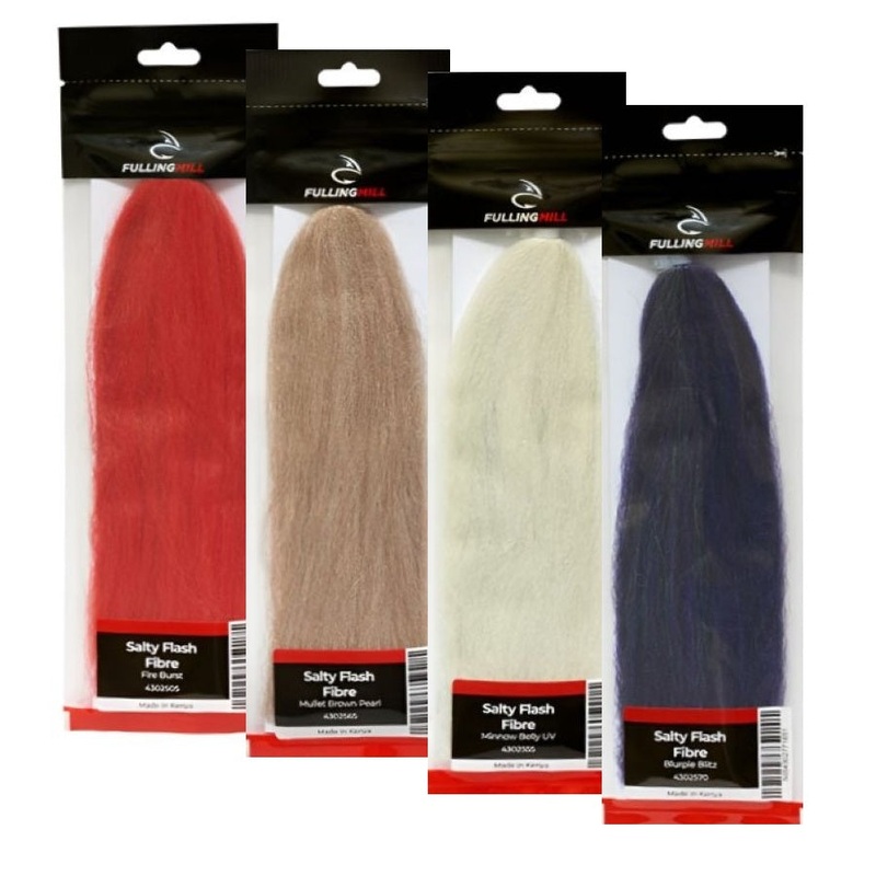 Fulling Mill Salty Flash Fiber is perfect for the tier who enjoys sculpting baitfish-style flies for both freshwater and saltwater applications. This blended material can be used to tie everything from mayfly and spent caddis wings to heads and bodies on b