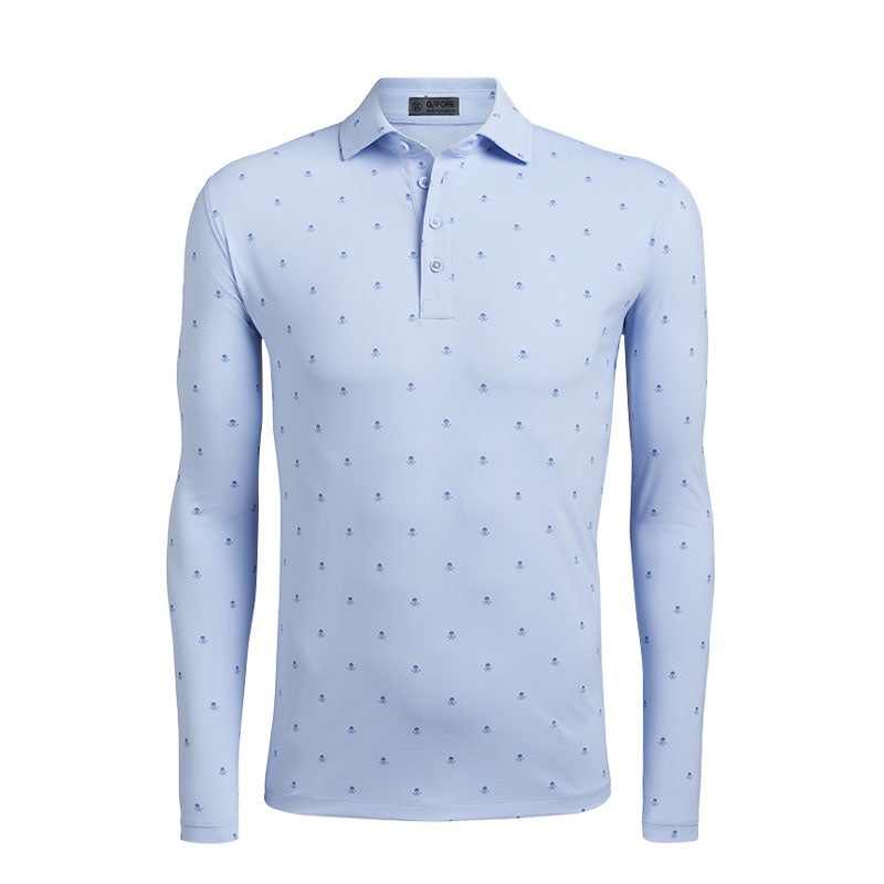 GFORE Skull & Tees Sun Men’s Long Sleeve Polo (Ice Blue)