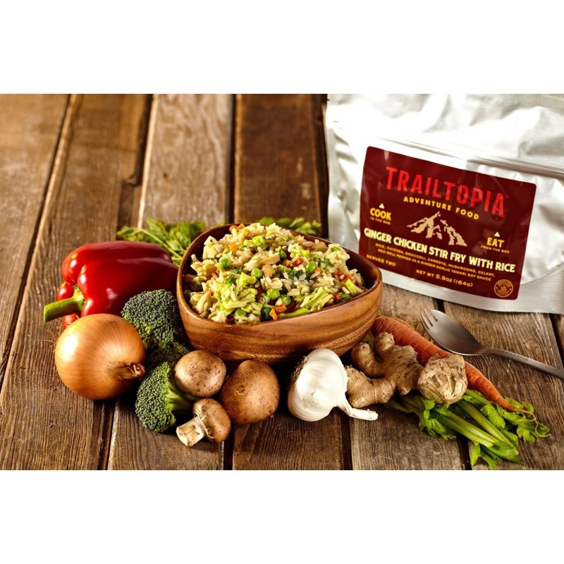 Ingredients: PARBOILED LONG GRAIN RICE (RICE, NIACIN, IRON, THIAMIN, FOLIC ACID),FREEZE DRIED BROCCOLI, FREEZE DRIED CHICKEN, HULLED HEMP SEED, TAMARI SOY SAUCE (SOYBEANS, SALT, VINEGAR, MALTODEXTRIN, SALT), DRIED CARROTS, FREEZE DRIED MUSHROOMS, FOOD STARCH-MODIFIED, FREEZE DRIED PEAS, YEAST EXRACT, DRIED RED BELL PEPPER, DRIED CELERY, GINGER, GARLIC, ONION, SPICES
