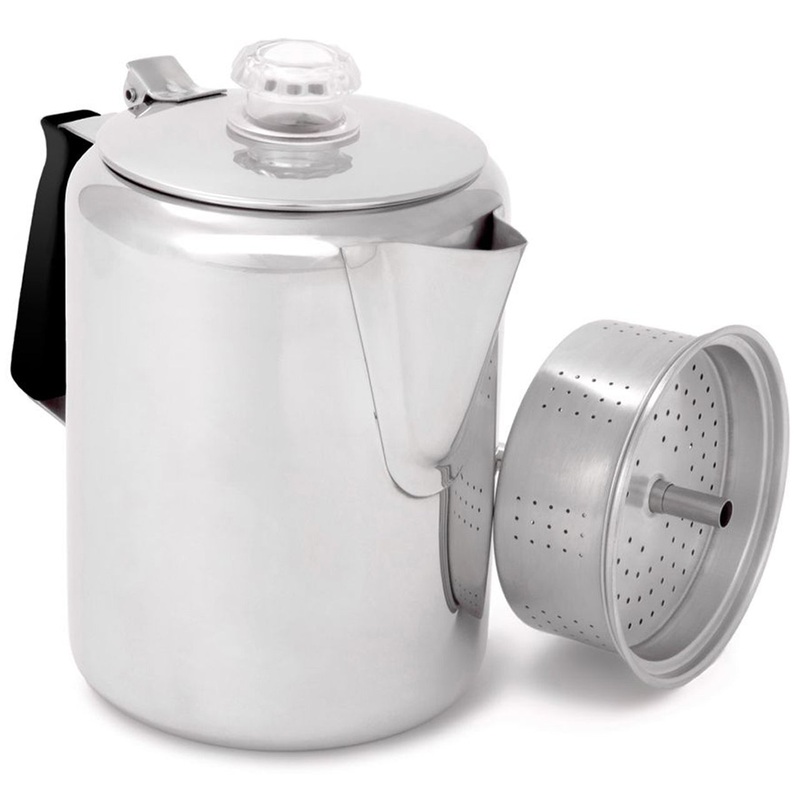 Weight (lbs):1.5600Stainless SteelMajor Dimension:9 cupIncludes:9 cup Percolator and InsertDimensions:8.8 in x 5.1 in x 7.7