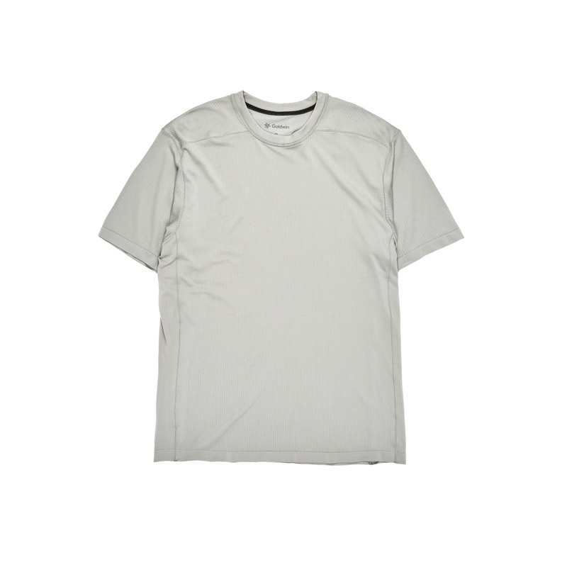 A technical tee from Goldwin, knitted from a warp and weft of polyester and nylon to make use of the best properties of both. Breathable and quick-drying owing to the unique knitting structure of the nylon-polyester yarn, which allows for maximised air flo