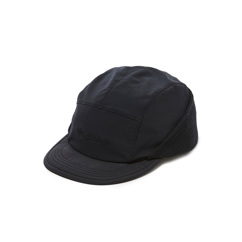 A winter cap by Goldwin. 5-panel construction, featuring a fold-down earflap, a soft, grid fleece lining, and wired brim for adjustability. The pull cord at the back allows for secure fit, and a water-resistant coating means you're covered for all the elem