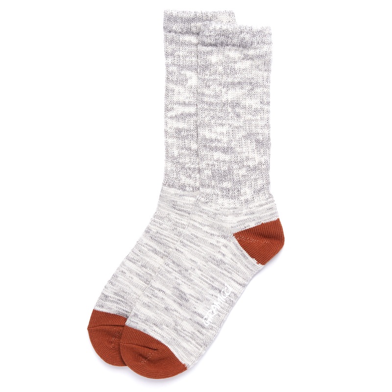 Perennial performers, the Soft Rib Crew Socks from Gramicci. A cotton rich ribbed style with a blended yarn of mixed colours and solid contrast heel and toe.