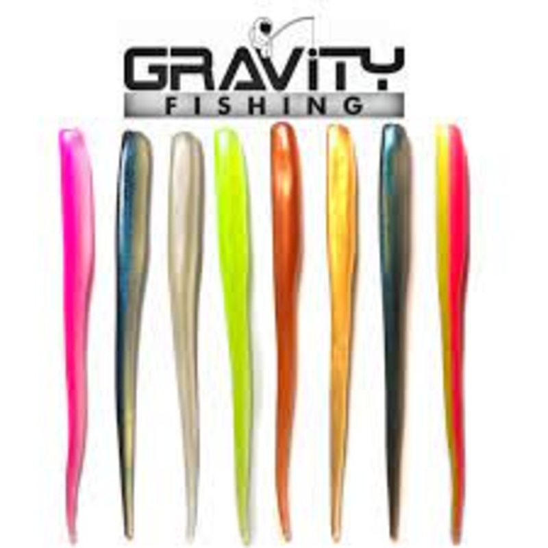 Gravity Tackle Sand EelGravity Tackle 6" Sand Eel is a soft plastic stick bait thatmimics sandeels, elvers, needlefish and small ballyhoo. This product is designed to adjust its hue according to the light hitting it, creating a vibrant visual during First/