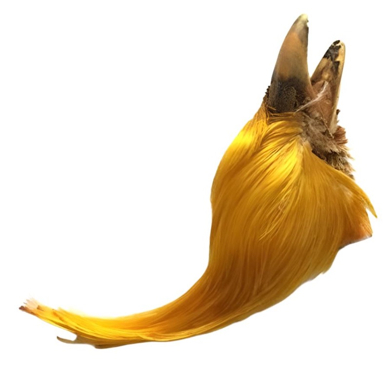 Golden Pheasant Crests from Hook and Hackle are an essential material for many classic patterns including the Blue Charm. These delicate feathers can be married into a wing or used as a tail. Comes in dyed and natural options.
