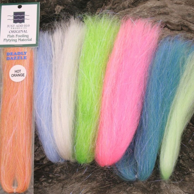 H2O Deadly Dazzle material is an infusion of Mirror Image Fiber, blended with Super UV Flash. This deadly combination creates a flashy cotton candy textured fiber that gives bulk and shape to a fly while retaining its natural translucency.Flashy and transl