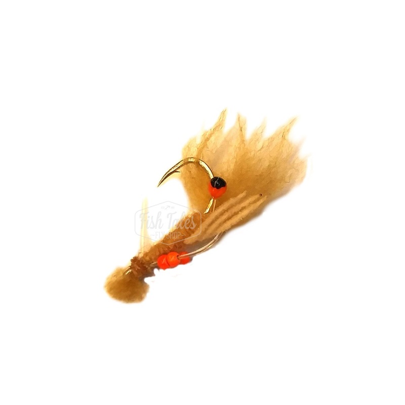 H2O Flies James Sand Prawn was designed by Alphonse Fishing Guide James Christmas to imitate a natural sand prawn. Features a hard mono weed guard, sound generating features and large, bright eyes enticing to bonefish, permit, and triggers.Large prawn patt