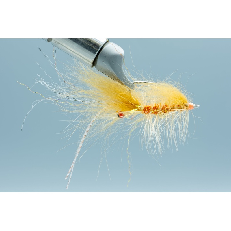 “Chewys Halo Shrimp is the lightest landing, hook riding up shrimp pattern on the market.It was designed for tailing bonefish, but quickly became a favorite for sight-casting to any warry flats species.Dock light anglers have also fallen in love with it due to the soft landing and how the center mounted Jig Bomb bead produces a level balance and a very believable shrimp pattern that hovers.– Signature Tyer Dave Chouinard