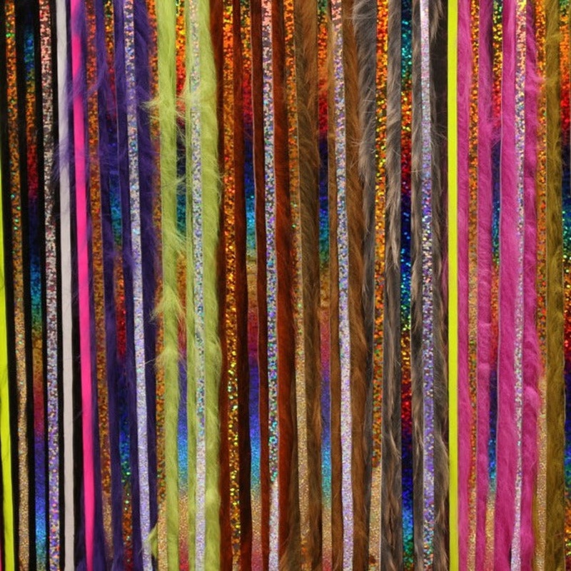 These 1/8" Hareline Bling Rabbit Strips incorporate a brilliant and tough (tested with pike!) accent color on the hide. This is innovative material that inspires new patterns and adds extra bling to your favorite streamer patterns.1/8" regular zonker cut r