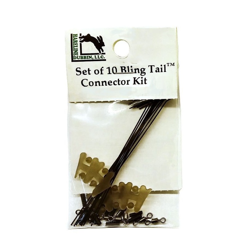 Hareline Bling Tail Connector Kit for Medium and Large Tails are an alternative to snaps or tails directly onto the hook shank. This larger size connector kit supports medium and large size tails like the Pacchiarini Dragon Tails. There's also a Bling Conn