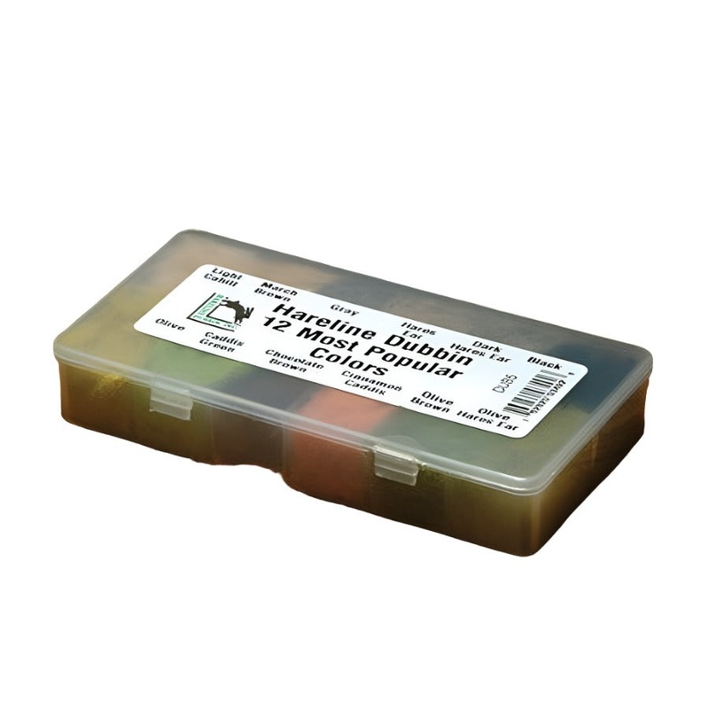 Hareline Dubbin's Rabbit Dubbing Dispenser is a handy box containing the 12 most popular colors in the product line. Hareline Dubbin Rabbit Dubbing is 100% rabbit hair perfectly blended and available in tons of color including 3 Hare's Ear blends. A Hareli