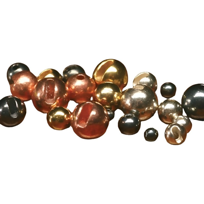 Hareline Slotted Tungsten Beads feature a round opening on one side and a slotted opening on the other. Slotted beads are essential for tying jig style nymphs, leeches and streamers.20 per package