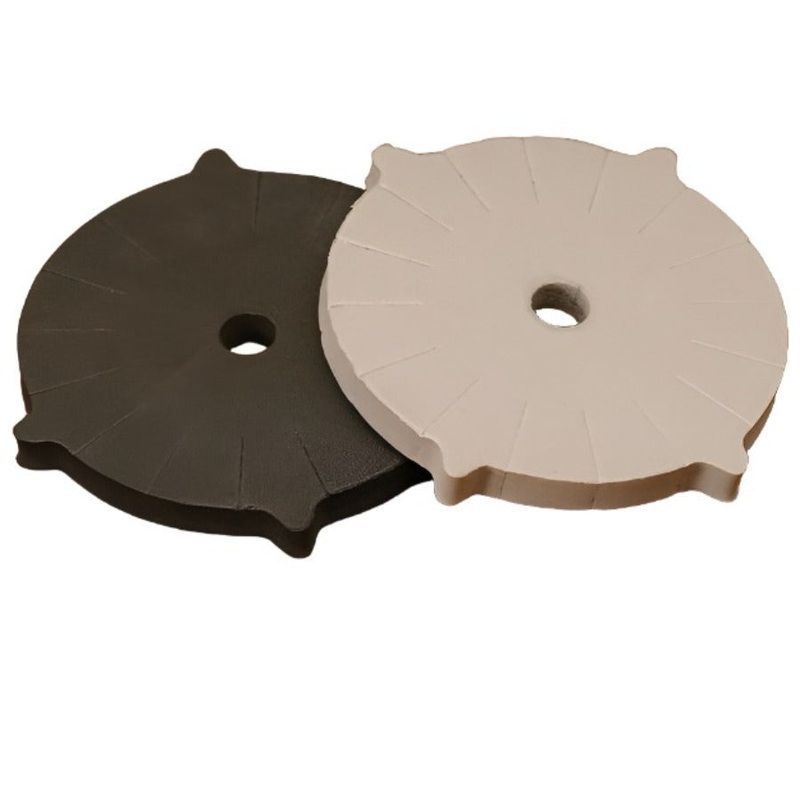 The Hareline Vise Fly Rack will fit on any vise stem and stays out of the way while tying. Just place your flies in one of the 16 slits around the outside edge. Multiple racks can also be rigged on a motorized rod and used as an epoxy fly turner.2 per pack