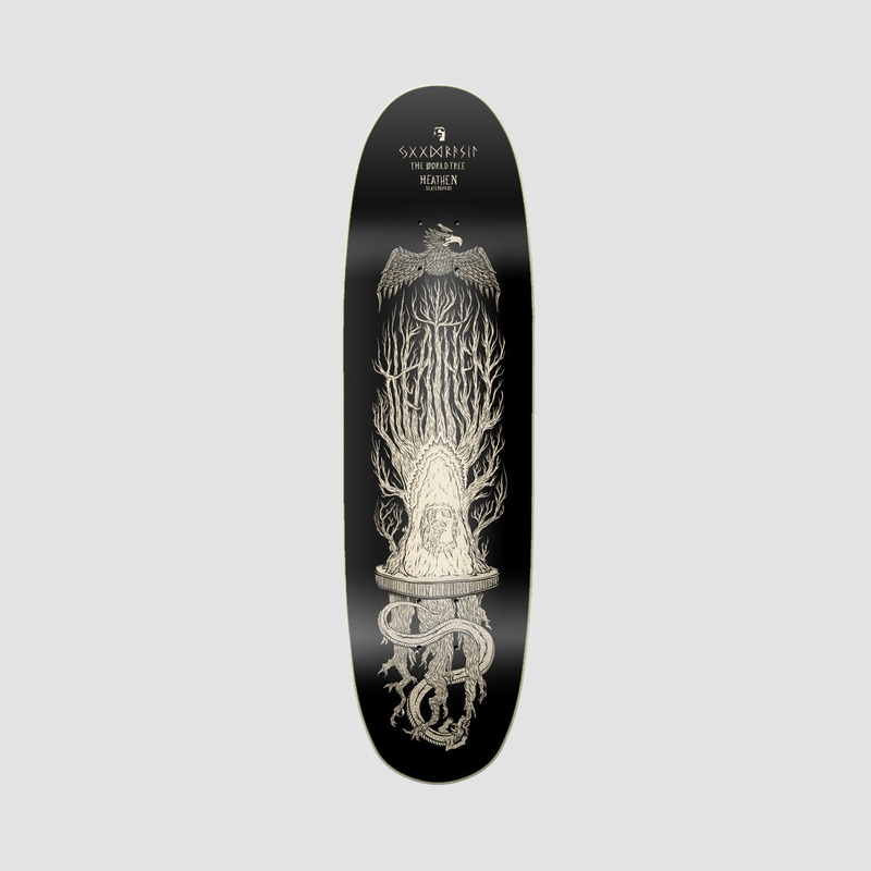 Back from oblivion, HEATHEN RETURNS!The new Norse line is a re-imagining of Heathen's best selling decks from 2015, but on new shapes.The Eggo:Width: 8.75Length: 31.75Wheelbase: 15.0Nose: 6.27Tail: 6.21Superply Canadian MapleSingle PressedUS Epoxy GlueWate