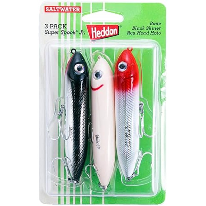 Heddon 3 Pack Saltwater Super Spook JrHeddon Super Spook Jr Topwater Fishing Lure for Saltwater and FreshwaterThe Heddon Super Spook Jr. features the tough construction and good looks of the full-sized Super Spook in a smaller, but still explosive, fish-ca