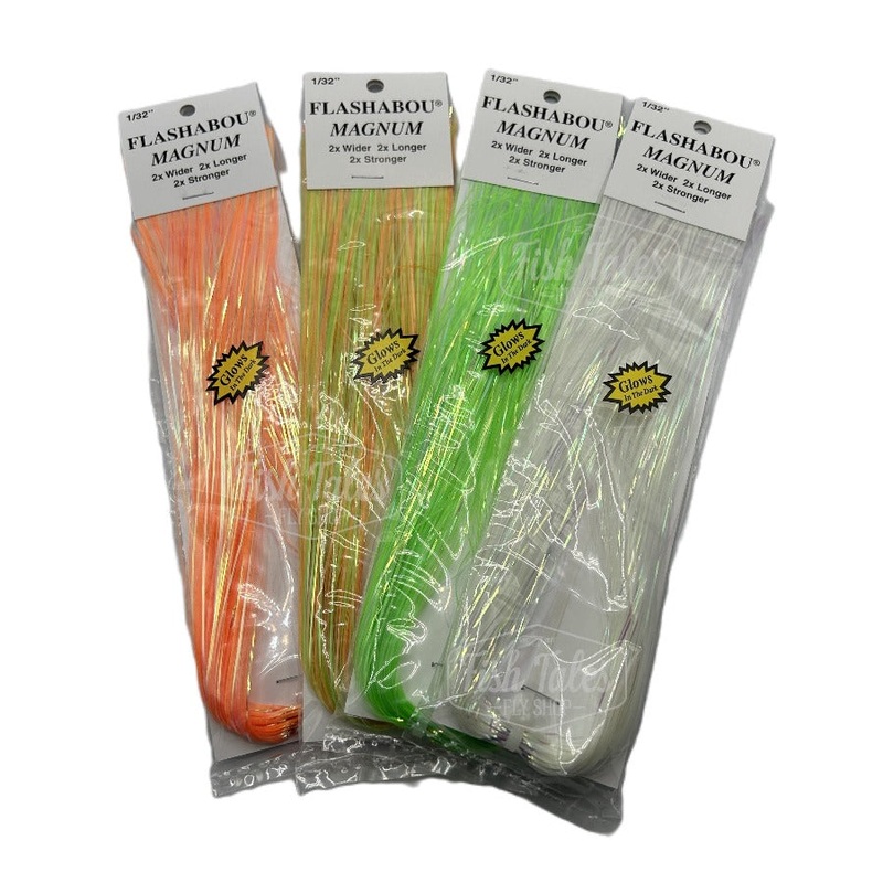 Hedron Flashabou Magnum Pearl-A-Glow is a Glow-in-Dark and Pearl Flashabou blend for adding accents to an extremely effective fly or lure pattern. The glow strands catch the attention of fish from a greater distance as the flash and movement of the pearl s