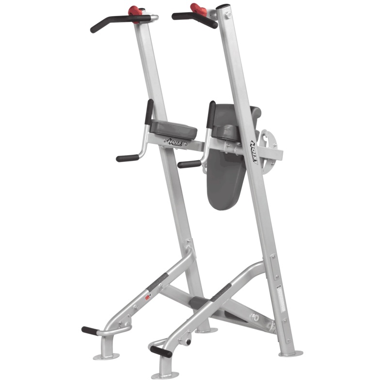 - Dual purpose back pad attaches for both vertical knee raise and sit up exercise positions